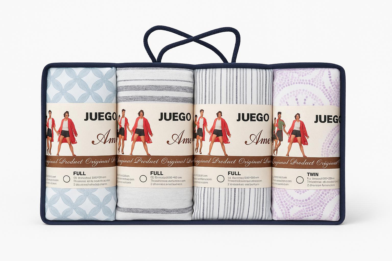 Cada juego incluye sábana superior, sábana ajustable y fundas de almohada a juego, ofreciendo comodidad, practicidad y una excelente presentación.